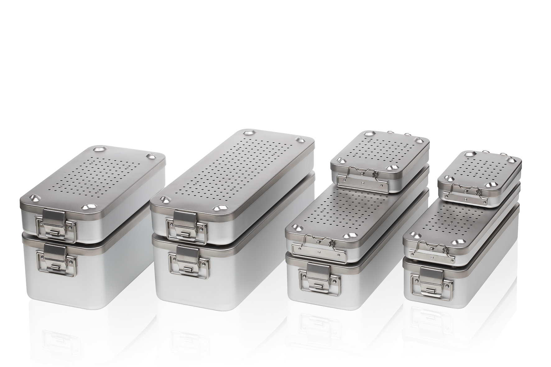 - Sterilisierbehälter mit gelochtem Boden und Deckel